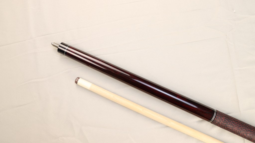 ·握把段 – 手工纏繞和壓製進口亞麻線 (黑底+紅棕色斑點)