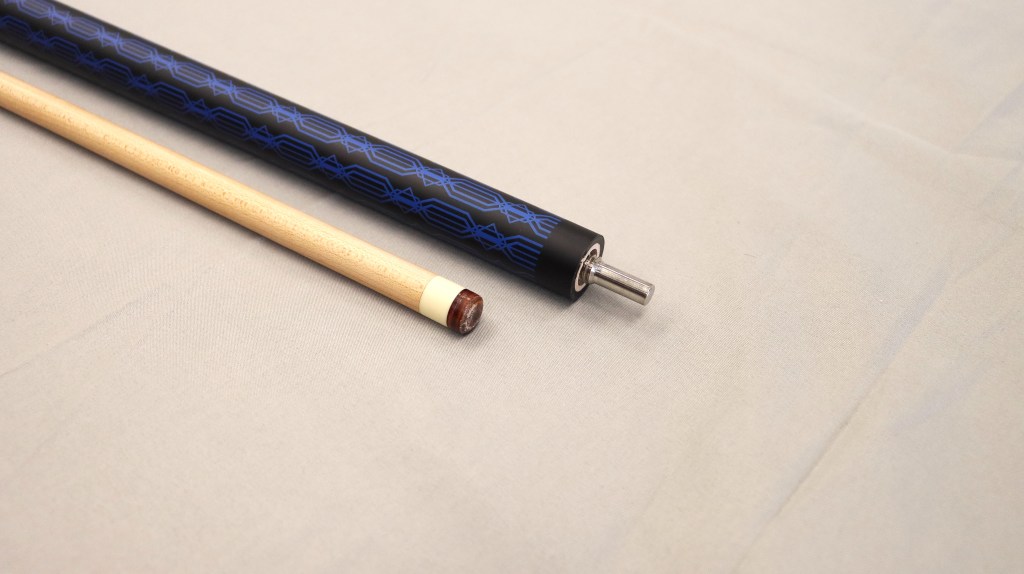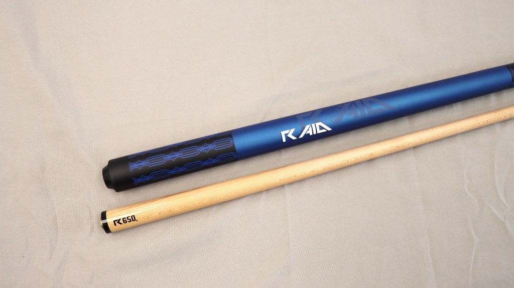 ·前節 – R650科技尾·皮頭 – 五層皮頭·接牙 – 3.5T平頭快拆·中輪 – 黑·上段材質 – 黑色亞光、藍色幾何樣式·握把段 – 亞光珍珠藍